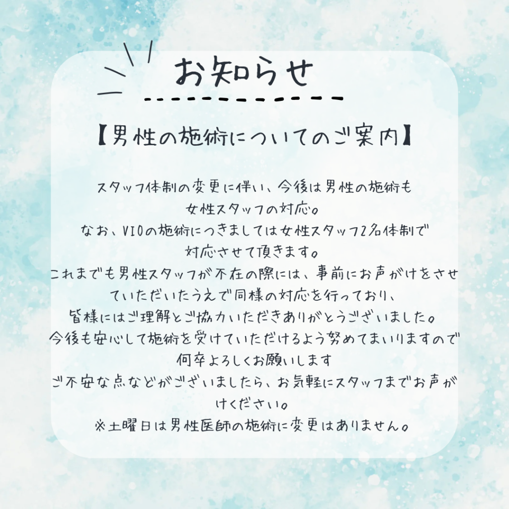 【男性の施術についてのご案内】