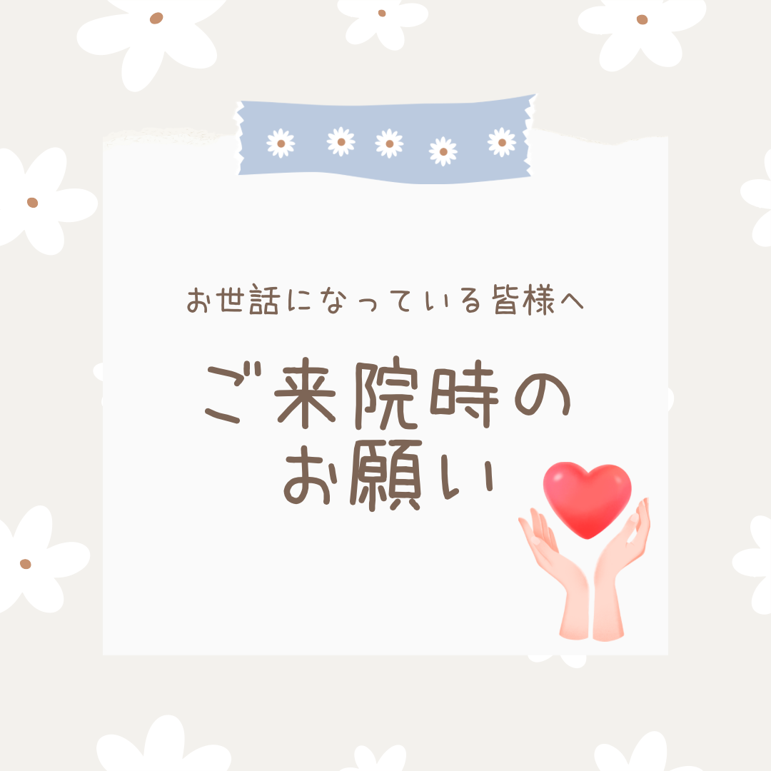 ※診療の都合により一部のお客様には早めのご来院をお願いする場合がございます。 いつもご協力・ご理解をいただき、本当にありがとうございます。